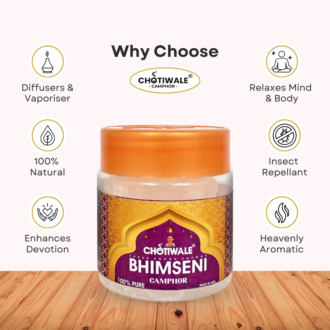Bring purity and devotion to your spiritual practices with Chotiwale Pure Bhimseni Camphor.