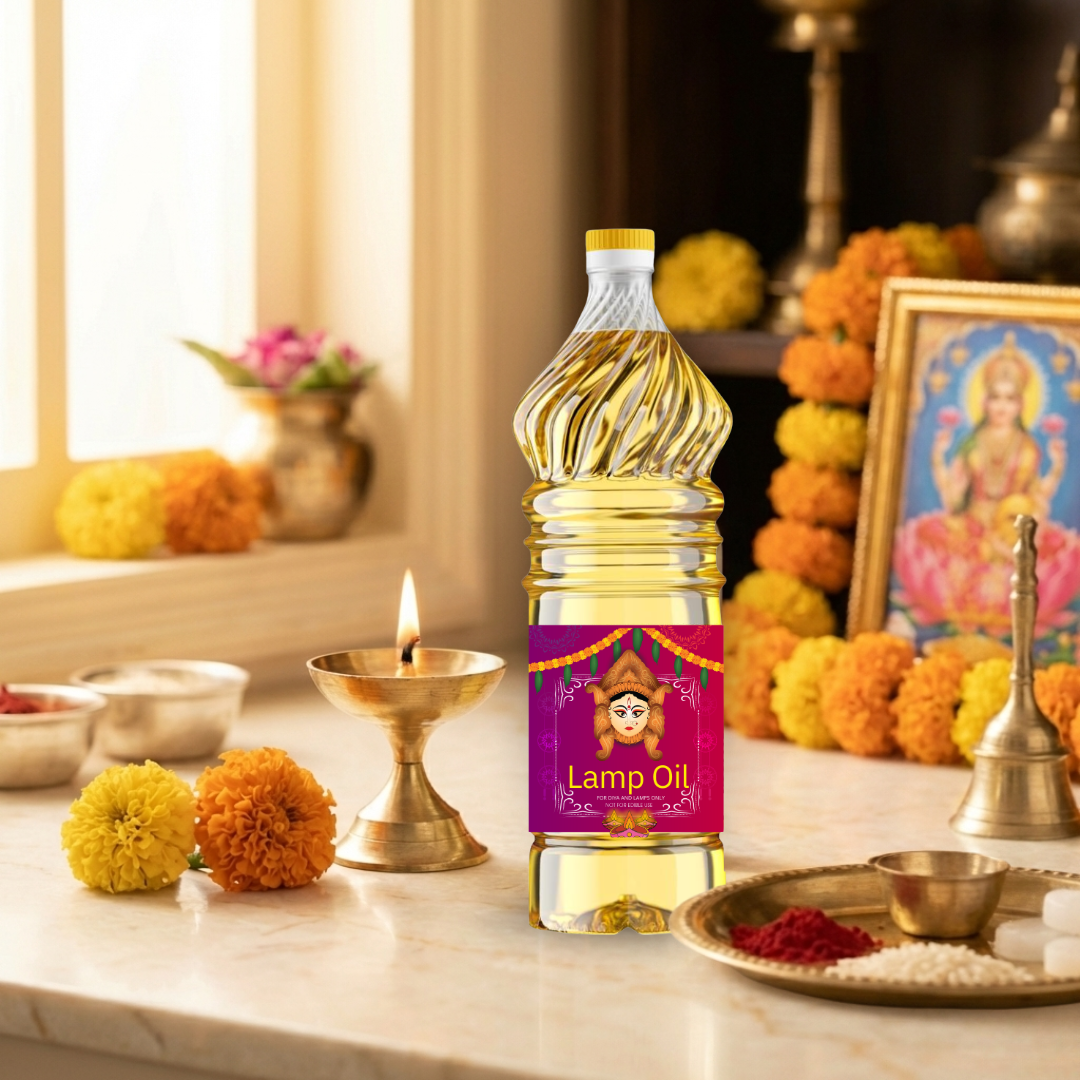 This lamp oil is carefully processed to ensure purity and smooth burning, making it perfect for daily worship, temples, and festive occasions like Diwali and Navratri. The long-lasting flame helps maintain an uninterrupted spiritual environment while keeping your prayer space clean.